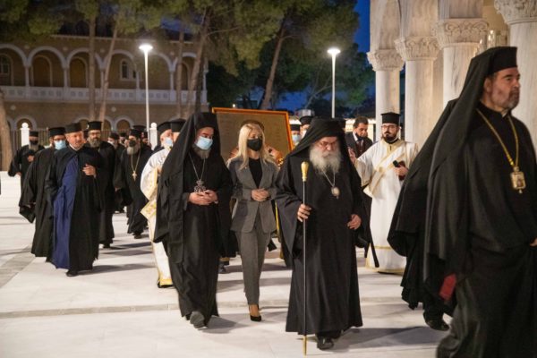 Μετά το πέρας του πανηγυρικού εσπερινού, ακολούθησε μετάβαση με πομπή στην Ιερά Αρχιεπισκοπή όπου εψάλη ο πολυχρονισμός προς τιμή τού Μακαριωτάτου και στη συνέχεια δέχθηκε τα συγχαρητήρια των παρευρισκομένων.