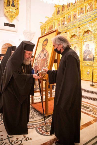 Στο τέλος τής ομιλίας, ο κ. Δημητρίου απηύθυνε ευχές προς τον εορτάζοντα Μακαριώτατο, όπως ο Κύριος «τὸν καθιστᾶ σῷον, ἔντιμον, ὑγιᾶ μακροημερεύοντα καί ὀρθοτομοῦντα τόν λόγον τῆς ἀληθείας».