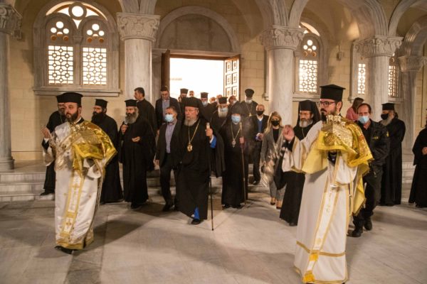 Στον νέο καθεδρικό ναό Αποστόλου Βαρνάβα στη Λευκωσία, με την παρουσία ιεραρχών, κληρικών και πιστών, ανάμεσα στους οποίους και η Πρόεδρος τής Βουλής κ. Αννίτα Δημητρίου, τελέστηκε το εσπέρας τής Παρασκευής 12ης Νοεμβρίου 2021, πανηγυρικός πολυαρχιερατικός εσπερινός, επί τη μνήμη του εν αγίοις πατρός ημών Ιωάννου Αρχιεπισκόπου Κωνσταντινουπόλεως του Χρυσοστόμου, χοροστατούντος τού εορτάζοντος Μακαριωτάτου Αρχιεπισκόπου Κύπρου κ.κ. Χρυσοστόμου και συγχοροστατούντων των Μητροπολιτών Πάφου κ. Γεωργίου, Κυρηνείας κ. Χρυσοστόμου, Τριμυθούντος κ. Βαρνάβα, Κορωνείας κ. Παντελέημονος, των επισκόπων Καρπασίας κ. Χριστοφόρου, Αμαθούντος κ. Νικολάου, Νεαπόλεως κ. Πορφυρίου και Μεσαορίας κ. Γρηγορίου, ενώ παρέστησαν συμπροσευχόμενοι και οι Έξαρχοι των Πατριαρχείων Αλεξανδρείας και Ιεροσολύμων, Επίσκοπος Νιτρίας κ. Νικόδημος και Μητροπολίτης Βόστρων κ. Τιμόθεος αντίστοιχα.