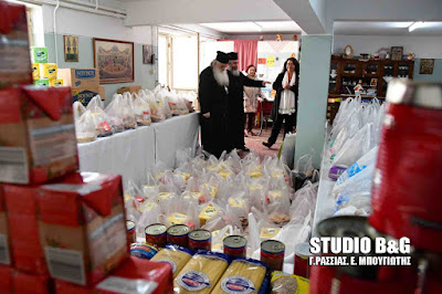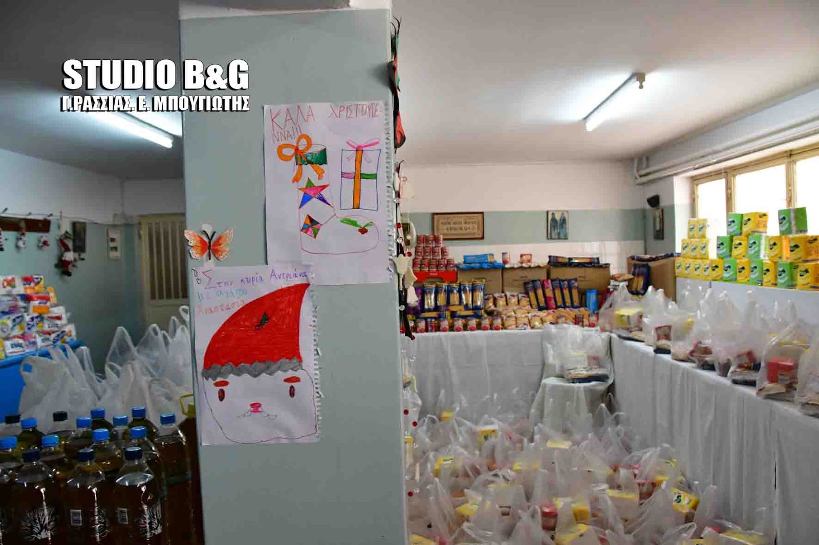 Τα τρόφιμα συγκεντρώθηκαν από τα Φιλόπτωχα ταμεία της Μητροπόλεως Αργολίδας και του Ιερού Ναού Ευαγγελίστριας Ναυπλίου, εν όψει των εορτών των Χριστουγέννων.