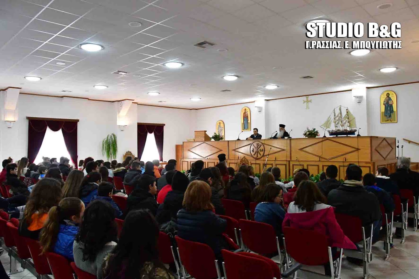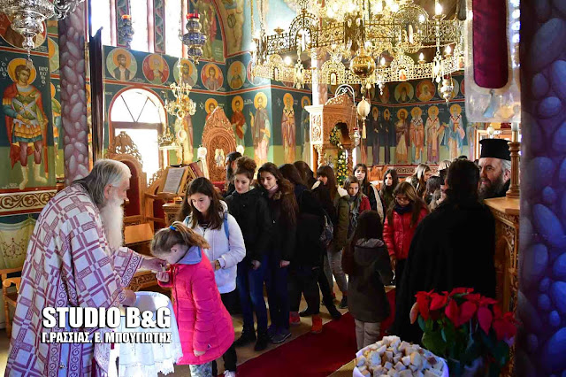 Το πρόγραμμα περιλάμβανε Αρχιερατική Θεία Λειτουργία, χοροστατούντος του Μητροπολίτη Αργολίδος και κατόπιν συνάντηση – συζήτηση στο συνεδριακό κέντρο του Προσκυνήματος καθώς και παράθεση γεύματος. Ο Μητροπολίτης με λόγια απλά και μεστά μίλησε στα παιδιά σαν φίλο τους κι εκείνα του το ανταπόδωσαν με ένα δυνατό χειροκρότημα .