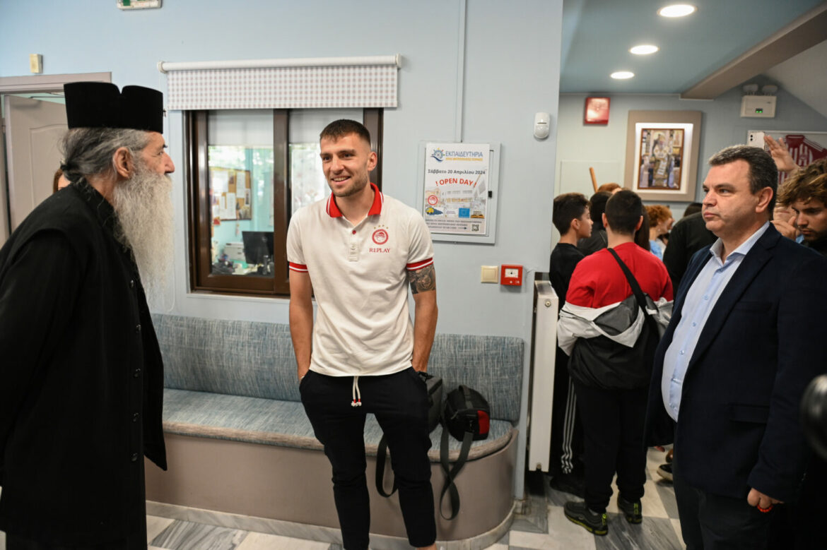 Ο ενθουσιασμός όλων εκτοξεύθηκε μόλις εμφανίστηκε στο προαύλιο του Σχολείου η αντιπροσωπεία του Ολυμπιακού. Όλοι είχαν την ευκαιρία να φωτογραφηθούν με τον Ανδρέα Ντόη, ο οποίος υπέγραψε αυτόγραφα και μοίρασε δώρα σε όλα τα παιδιά, προσφορά της ΠΑΕ Ολυμπιακός. Ο Μητροπολίτης Πειραιώς του δώρισε μια εικόνα, ενώ δεν παρέλειψε να συγχαρεί την ποδοσφαιρική ομάδα του Ολυμπιακού για τις μεγάλες νίκες που έκαναν υπερήφανους όχι μόνο τους Πειραιώτες, αλλά όλους τους Έλληνες, όπως χαρακτηριστικά είπε.