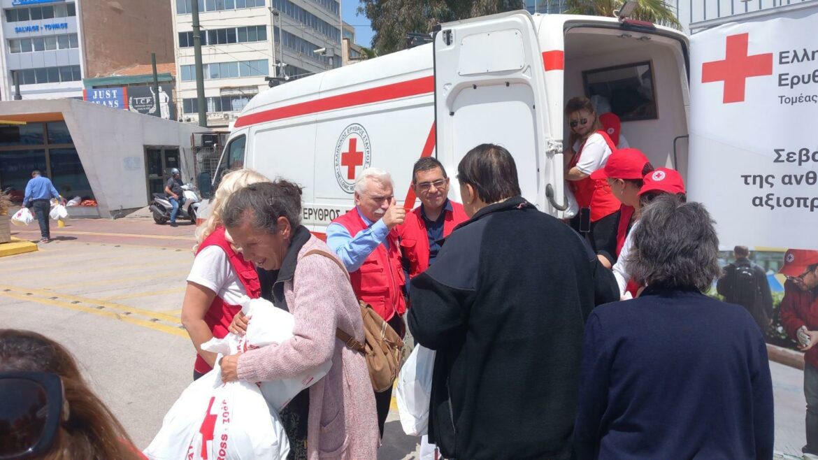 Ο Ελληνικός Ερυθρός Σταυρός, πραγματοποίησε, εν όψει των εορτών του Πάσχα,δράση ενεργητικής προσέγγισης, υποστήριξης και διάθεσης ανθρωπιστικής βοήθειας σε αστέγους που διαβιούν στο λιμάνι του Πειραιά (Πύλη Ε9), τηΜεγάλη Πέμπτη, 2 Μαΐου 2024,παρουσία του Προέδρου του Ε.Ε.Σ., Dr. Αντώνιου Αυγερινού και του Βουλευτή Επικρατείας, κ. Γιώργου Σταμάτη.
