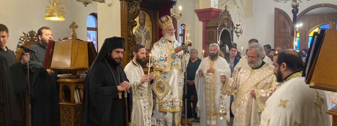 Ο Σεβ. Μητροπολίτης μας κ. Ανδρέας, τέλεσε τον πανηγυρικό εσπερινό, συμπροσευχομένου εκ του Ιερού βήματος του οικείου Ποιμενάρχου Λάμπης, Συβρίτου και Σφακίων κ. Ειρηναίου. Ο Σεβασμιώτατος κ. Ανδρέας ομίλησε στο πολυπληθές εκκλησίασμα αναφερόμενος στην βιωτή των Αγίων. Τέλος, ευλόγησε τους προσφερόμενους άρτους και ευχαρίστησε τον Σεβασμιώτατο κ. Ειρηναίο για την χαρά της πρόσκλησης.