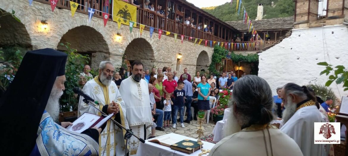 Κατά τη διάρκεια της εσπερινής λατρευτικής σύναξης, ο σεπτός Ποιμενάρχης μας απηύθυνε λόγο πνευματικής οικοδομής. Αρχικά, συνεχάρη τους ευλαβείς προσκυνητές, που είχαν κατακλύσει τον προαύλιο χώρο της Μονής, επειδή κάθε χρόνο αποδεικνύουν με την παρουσία τους την πίστη τους, αλλά και την αγάπη τους για το Μοναστήρι. Στη συνέχεια, ο Σεβασμιώτατος μίλησε, με γλαφυρότητα, για τον τιμώμενο Άγιο και για τα φρικτά βασανιστήρια που υπέστη με καρτερικότητα, τονίζοντας ότι στη σύγχρονη εποχή δεν ζητείται ομολογία αίματος, αλλά ομολογία πίστεως και έμπρακτης εφαρμογής της ενάρετης ζωής.