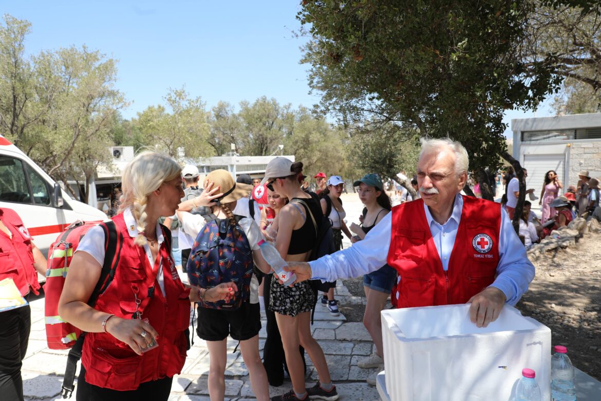 Με επιτυχία πραγματοποιήθηκε την Παρασκευή (19/7) η μεγάλη δράση υποστήριξης των επισκεπτών της Ακρόπολης λόγω καύσωνα από τον Ελληνικό Ερυθρό Σταυρό, προσφέροντας στους χιλιάδες επισκέπτες στιγμές δροσιάς, Πρώτες Βοήθειες αλλά και αναλυτική ενημέρωση για τους δυνητικούς κινδύνους που απορρέουν από τις υψηλές θερμοκρασίες.