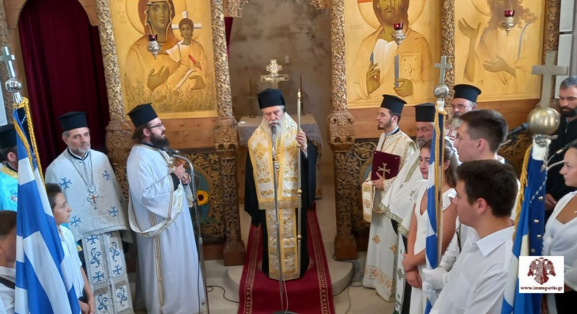 Το πρωί της επετειακής ημέρας, στον Ι.Ν. Παναγίας Μυρτιδιώτισσας, εντός της Καστροπολιτείας, τελέσθηκε Δοξολογία, προεξάρχοντος του Σεβασμιωτάτου Μητροπολίτη μας κ. Ευσταθίου. Ακολούθησε η εκφώνηση του πανηγυρικού της ημέρας από τον κ. Μάσιμο Κατσούλο, καθηγητή Αρχαίας Ελληνικής και Λατινικής Φιλολογίας στο Κλασικό Λύκειο «Tito Livio» του Μιλάνου.