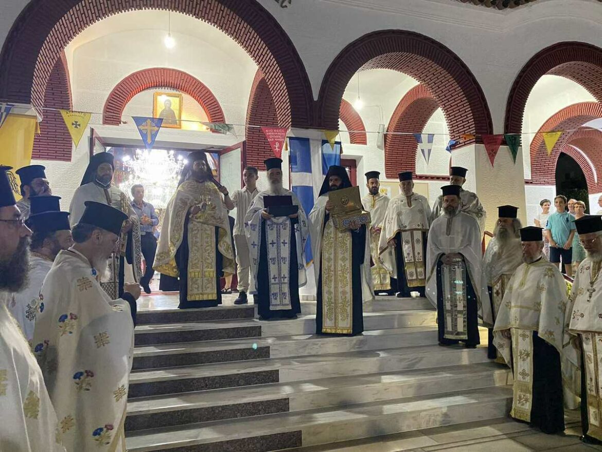 Την παραμονή της εορτής, Πέμπτη 25 Ιουλίου 2024, ο Πανοσιολογιώτατος Αρχιμανδρίτης π. Αμφιλόχιος Παπανδρέου, Πρωτοσύγκελλος της Ιεράς μας Μητροπόλεως, προέστη της ακολουθίας του Εσπερινού και της λιτάνευσης της ιεράς εικόνος της Αγίας Παρασκευής και την κυριώνυμο ημέρα, ο Σεβασμιώτατος Μητροπολίτης μας κ. Τιμόθεος, χοροστάτησε στην ακολουθία του Όρθρου και τέλεσε τη Θεία Λειτουργία στον ως άνω Ιερό Ναό.