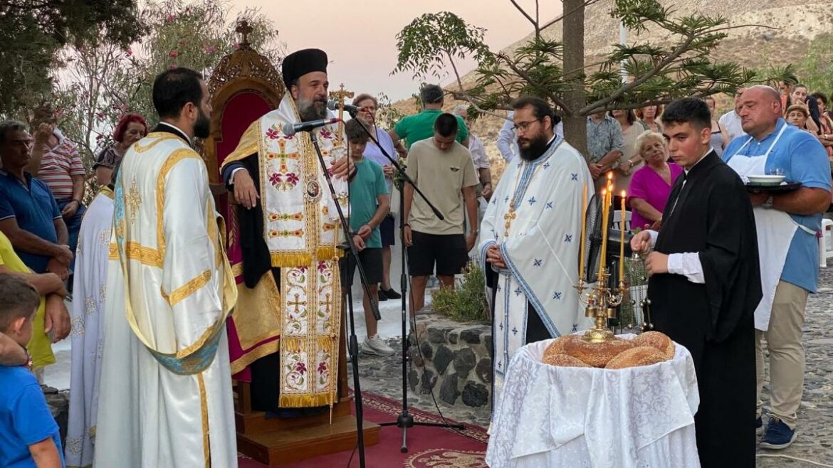 Το απόγευμα της Τετάρτης 14 Αυγούστου, ο Σεβασμιώτατος Μητροπολίτης Θήρας Αμοργού και Νήσων κ. Αμφιλόχιος τέλεσε τον Μέγα Πανηγυρικό Εσπερινό στον Βυζαντινό Ιερό Ναό Παναγίας Επισκοπής, ο οποίος χρονολογείται στον 11ο αιώνα επί Αυτοκρατορίας Αλεξίου Κομνηνού, στην Μέσα Γωνιά της Σαντορίνης.