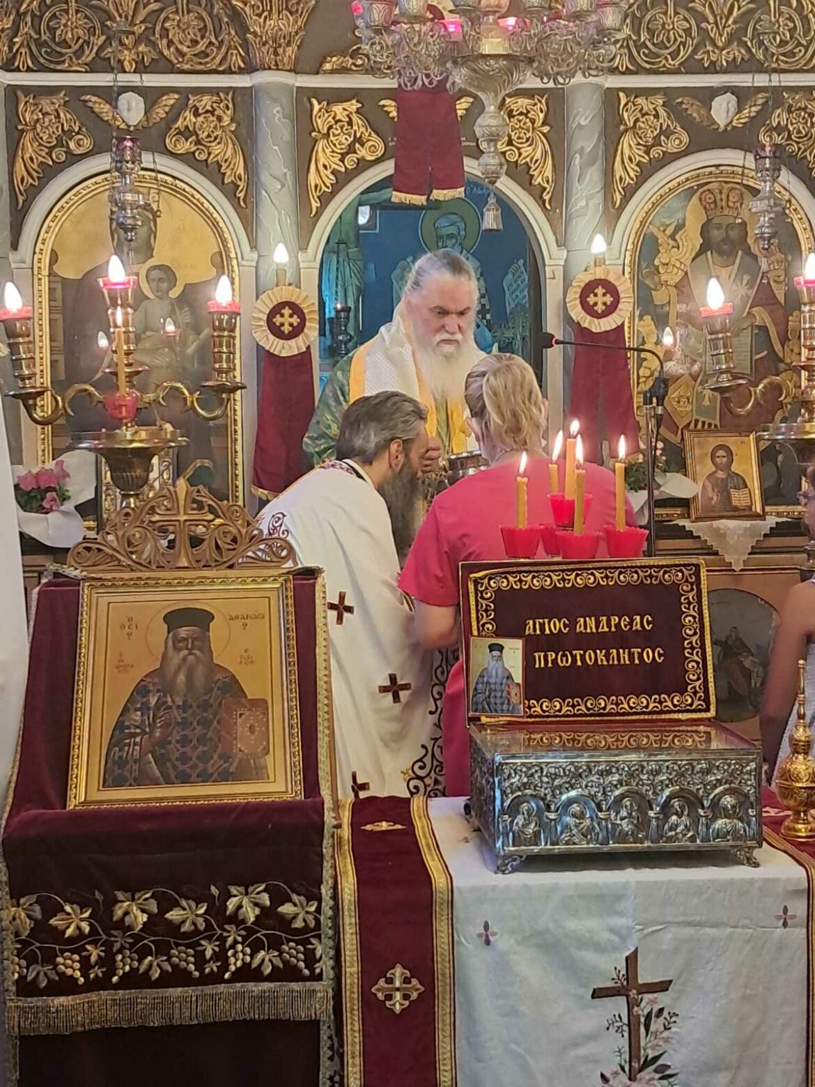 Το Σάββατο 17 Αυγούστου 2024, ημέρα μνήμης της οσιακής κοιμήσεως του Οσίου Πατρός Αθανασίου Χαμακιώτου του Αγιολαυριώτου, ο Σεπτός Ποιμενάρχης μας, Σεβασμιώτατος Μητροπολίτης Καλαβρύτων και Αιγιαλείας κ. Ιερώνυμος, τέλεσε το Μυστήριο της Θείας Ευχαριστίας στον Ιερό Ναό Αγίου Ανδρέου Τουρλάδος, απ’ όπου κατήγετο ο προσφάτως αγιοκαταταχθείς Όσιος Αθανάσιος. Τον Σεβασμιώτατο πλαισίωσαν ο Αρχιερατικός Επίτροπος Καλαβρύτων π. Χρήστος Μπίρμπας και ο Αιδεσιμολογιώτατος Πρωτοπρεσβύτερος π. Σπυρίδων Καζάνης, εκ της Ιεράς Μητροπόλεως Περιστερίου, ο οποίος κατάγεται από την Τουρλάδα και διατελεί πρόεδρος του τοπικού Συλλόγου. Επιπλέον, την ίδια ημέρα, στην Ιστορική Ιερά Μονή της Αγίας Λαύρας, όπου εκάρη μοναχός και ασκήτευσε ο Όσιος Αθανάσιος, τέλεσε τη Θεία Λειτουργία ο Σεβασμιώτατος Μητροπολίτης Σερβίων και Κοζάνης κ. Παύλος.