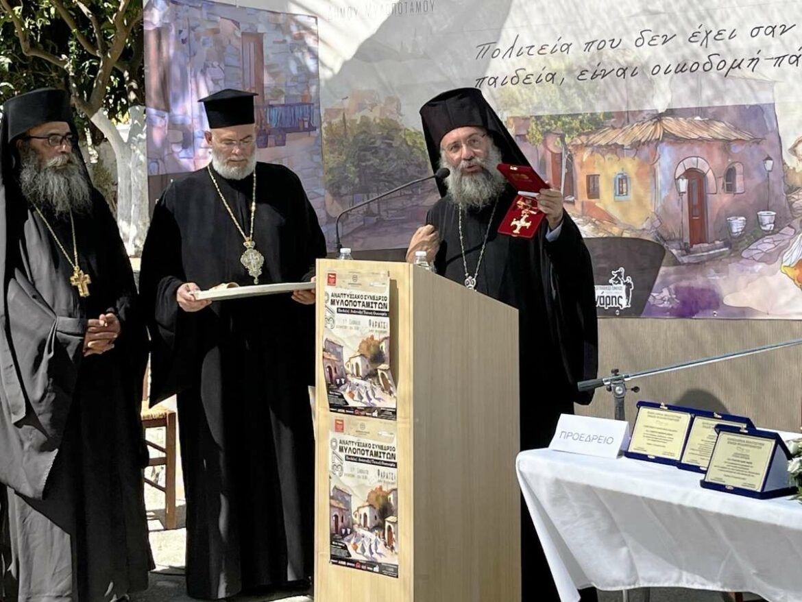 Ο Σεβασμιώτατος χαιρέτισε καταλλήλως το Συνέδριο και, τιμώντας την προσφορά στον τόπο και στην Ιερά Μητρόπολη Ρεθύμνης και Αυλοποτάμου του κ. Γεωργίου Σιγανού, επιχειρηματία, ο οποίος κατάγεται από το Φαράτσι και δραστηριοποιείται στη Νέα Υόρκη των Η.Π.Α., απένειμε σε αυτόν την Ανωτάτη Τιμητική Διάκριση της Ιεράς Μητροπόλεως Ρεθύμνης και Αυλοποτάμου, τον Σταυρό των Αγίων Τεσσάρων Νεομαρτύρων, Μανουήλ, Αγγελή, Γεωργίου και Νικολάου, των εν Ρεθύμνη μαρτυρησάντων.