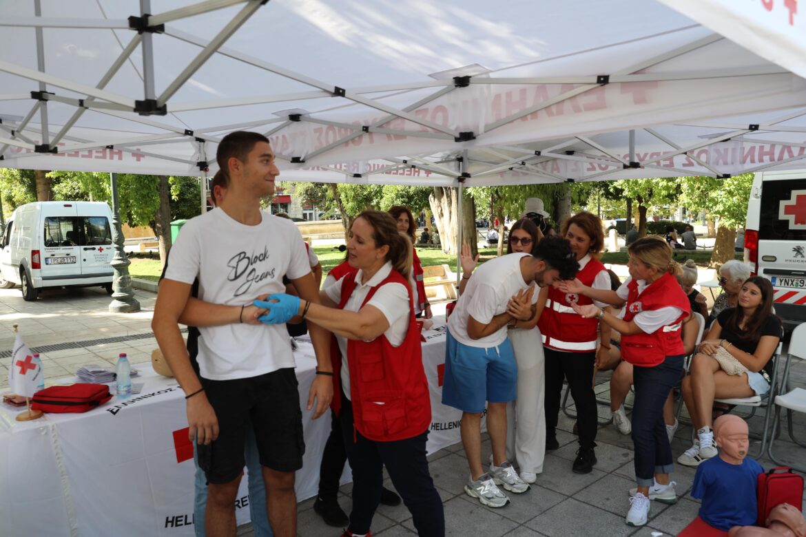 Ο Ελληνικός Ερυθρός Σταυρός, στο πλαίσιο του εορτασμού της Παγκόσμιας Ημέρας Πρώτων Βοηθειών (14/9), διοργάνωσε, στην Πλατεία Συντάγματος, μεγάλη δράση για την ευαισθητοποίηση και εξοικείωση των πολιτών με τις Πρώτες Βοήθειες, παρουσία του Προέδρου του Ε.Ε.Σ., Dr. Αντώνιου Αυγερινού.