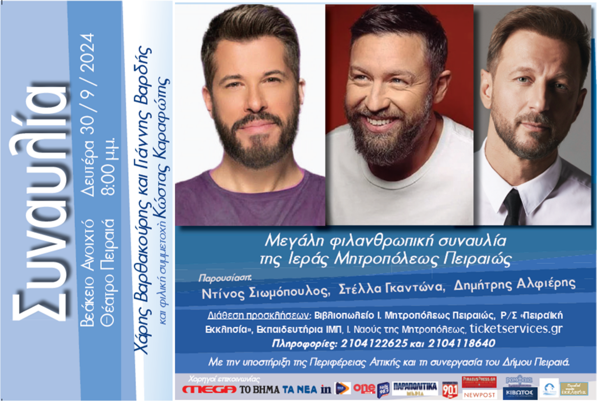 Στην τελική ευθεία βρίσκονται οι προετοιμασίες για την μεγάλη φιλανθρωπική συναυλία που διοργανώνει η Ι. Μητρόπολη Πειραιώς τη Δευτέρα 30 Σεπτεμβρίου 2024, στις 20:00, στο Βεάκειο Θέατρο Πειραιά