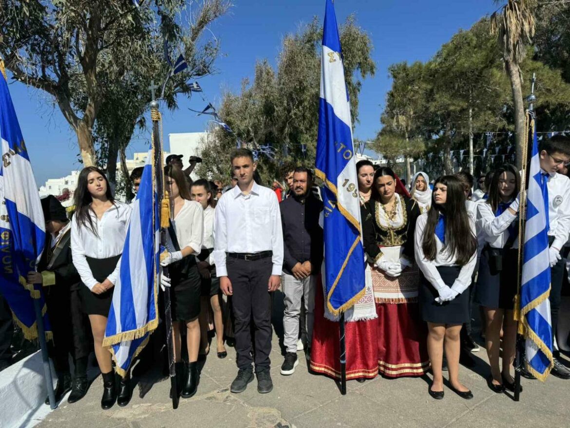 Στον Ιερό Μητροπολιτικό Ναό Υπαπαντής του Σωτήρος στα Φηρά της Σαντορίνης, κατά την εθνική επέτειο της 28ης Οκτωβρίου 1940, πραγματοποιήθηκε πανηγυρική Δοξολογία χοροστατούντος του Σεβασμιωτάτου Μητροπολίτου Θήρας Αμοργού και νήσων κ. Αμφιλοχίου, στη συνέχεια τελέσθηκε επιμνημόσυνη δέηση στο μνημείο των Ηρώων στην Δημοτική Πλατεία «Σαρπάκη», ακολούθησε κατάθεση στεφάνων και τέλος πραγματοποιήθηκε παρέλαση των μαθητών, συλλόγων καθώς και τμήματος Εθνοφυλακής Θήρας με την συνοδεία της Φιλαρμονικής Ορχήστρας του Δήμου Θήρας.