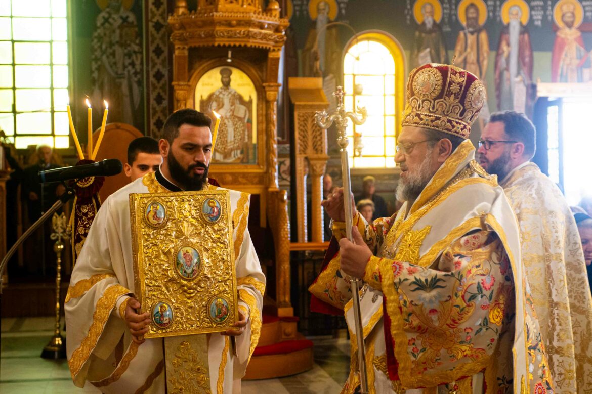 Ο Σεβασμιώτατος Μητροπολίτης Μεσσηνίας κ. Χρυσόστομος, τέλεσε την πανηγυρική θεία Λειτουργία στον εορτάζοντα Ιερό Ναό στο κέντρο της πόλης, πλαισιούμενος από Ιερείς της Μητροπόλεως.