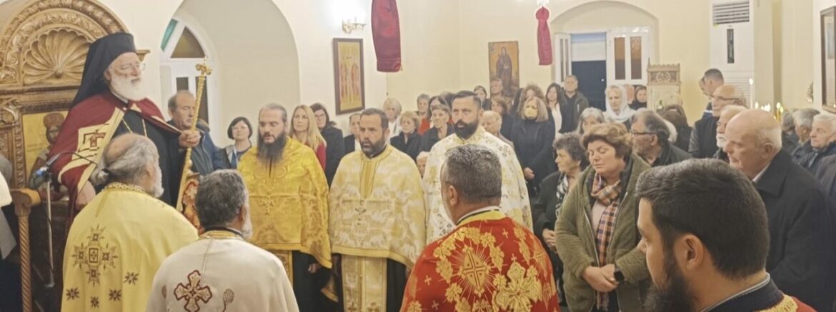 Την κυριώνυμο ημέρα Σάββατο, ο Σεβασμιώτατος κ. Ανδρέας παρέστη συμπροσευχόμενος εκ του Ιερού Βήματος στην Θεία Λειτουργία που τελέστηκε προεξάρχοντος του Πρωτοσυγκέλλου της καθ’ημάς Ι. Μητροπόλεως, Πανοσιολ. Αρχιμ. κ. Επιφανίου Ζαχαράκη. Προ της απολύσεως, ο σεπτός Ποιμενάρχης μας ευλόγησε τους προσφερόμενους άρτους και ευχήθηκε έτη πολλά και ευλογημένα. Μεταξύ άλλων παρέστησαν οι Αντιδήμαρχοι κ. Γιώργος Παπαδόπουλος εκπρόσωπος του Δημάρχου, με τον κ. Γιάννη Συμνιανάκη και ο Πρόεδρος της Κοινότητας Αρκαλοχωρίου κ. Γιώργος Μαλαδάκης.
