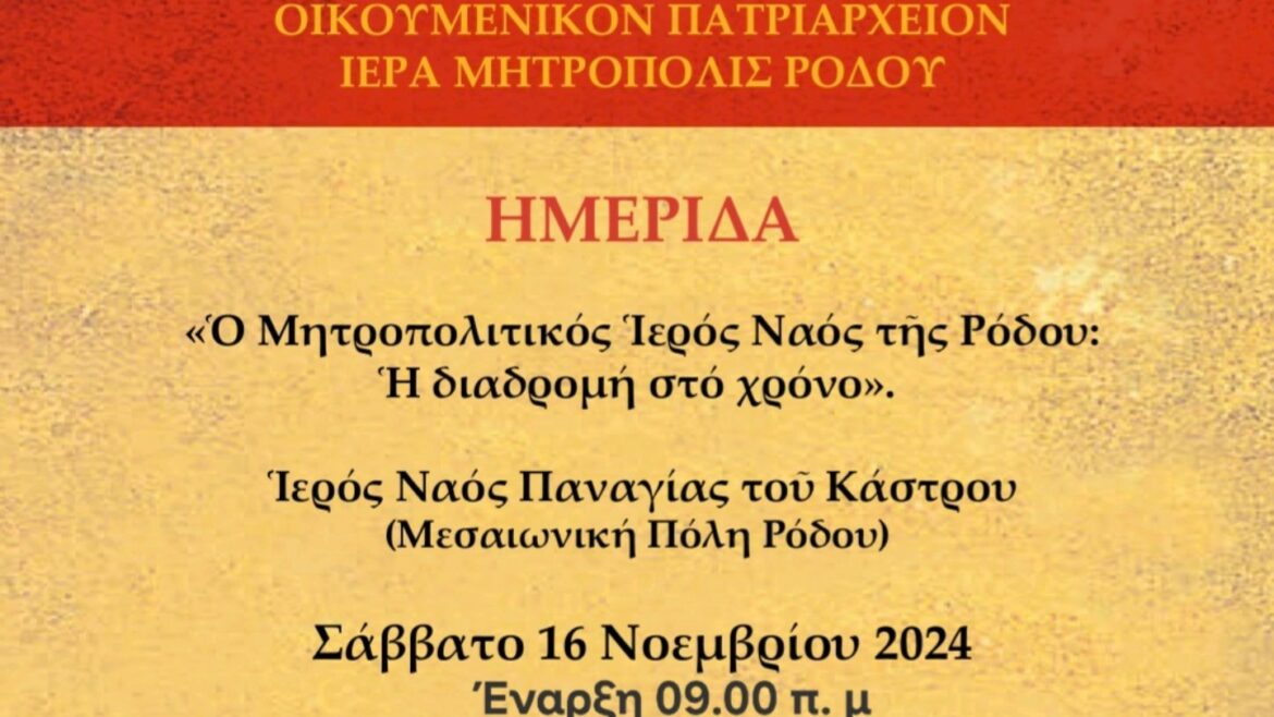 Ἡ Ἱερά Μητρόπολις Ρόδου σᾶς προσκαλεῖ στήν Ἡμερίδα μέ θέμα: «Ὁ Μητροπολιτικός Ἱερός Ναός τῆς Ρόδου: Ἡ διαδρομή στό χρόνο»,