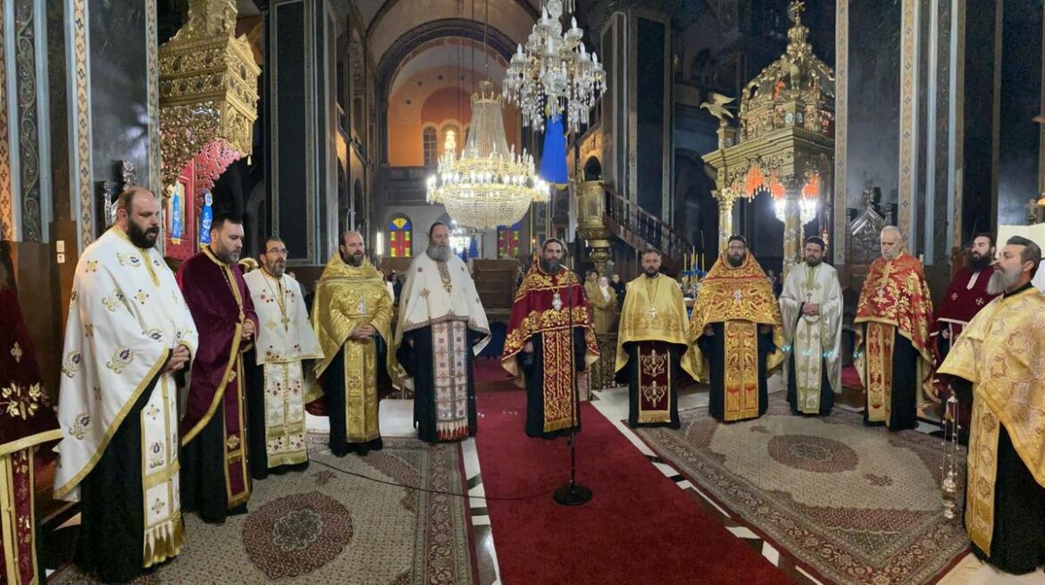 Ως εκ τούτου, κατά την ακολουθία του Εσπερινού προέστη ο Πανοσιολογιώτατος Αρχιμανδρίτης π. Αμφιλόχιος Παπανδρέου, Πρωτοσύγκελλος της Ιεράς μας Μητροπόλεως, ενώ στην ακολουθία του Όρθρου χοροστάτησε και τη Θεία Λειτουργία τέλεσε ο Σεβασμιώτατος Μητροπολίτης μας κ. Τιμόθεος.
