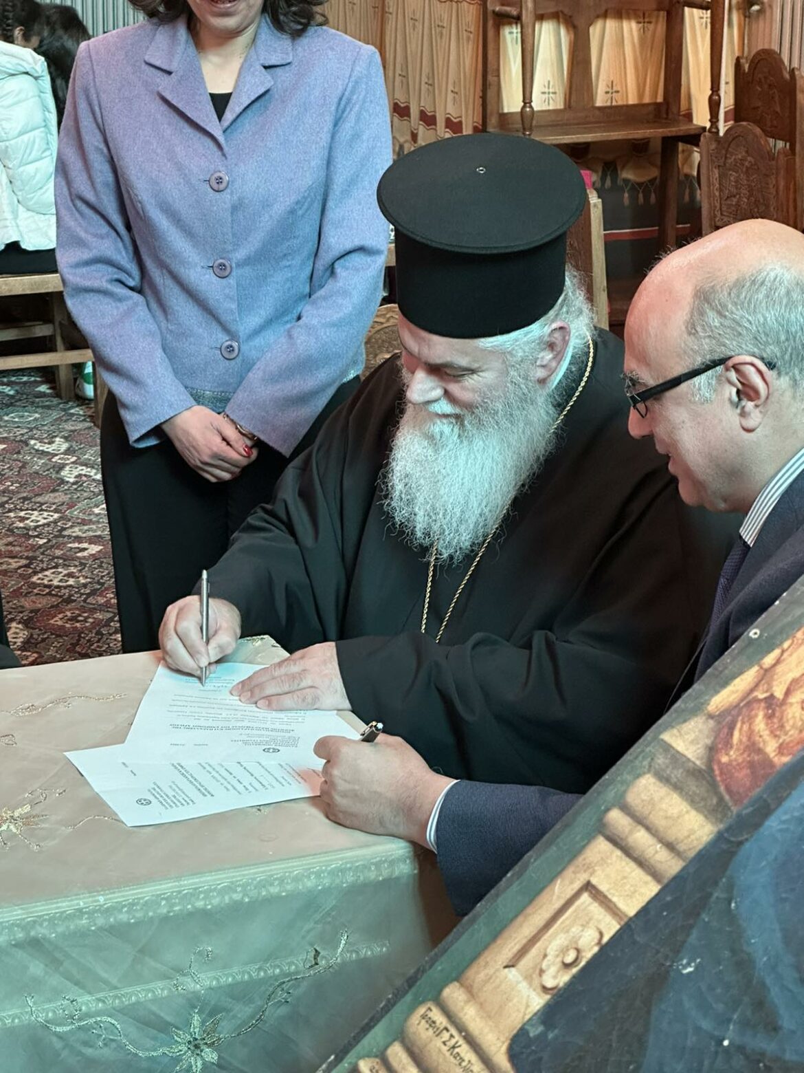 Κατόπιν αιτήματος του Σεπτού Ποιμενάρχου μας Σεβασμιωτάτου Μητροπολίτου Καλαβρύτων και Αιγιαλείας κ. Ιερωνύμου προς τον αξιότιμο Υπουργό Δικαιοσύνης κ. Γεώργιο Φλωρίδη αναφορικά με την παράδοση στην Ιερά Μητρόπολη της εικόνος του Ιησού Χριστού που ήταν ανηρτημένη στην δικαστική αίθουσα του Ειρηνοδικείου Ακράτας, μετά την παύση της λειτουργίας του και της συγχωνεύσεώς του με το Ειρηνοδικείο Καλαβρύτων, ο κ. Υπουργός με απόφασή του αποδέχθηκε το σχετικό αίτημα. Έτσι την Παρασκευή 22 Νοεμβρίου 2024 και περί ώρα 11.00 π.μ. πραγματοποιήθηκε στον Ιερό Ναό Αγίου Χαραλάμπους Ακράτας η τελετή παράδοσης- παραλαβής της Εικόνος του Κυρίου μας καθώς και μίας μικρότερης εικόνας, παρουσία του Σεπτού Ποιμενάρχου μας κ. Ιερωνύμου, του Γενικού Γραμματέα του Υπουργείου Δικαιοσύνης κ. Πέλοπος Λάσκου, και των συνεργατών του, κ. Ανδρέα Σαμαρτζή και κας. Όλγας Βούρδα. Τον Δήμαρχο Αιγιαλείας κ. Παναγιώτη Ανδριόπουλο εκπροσώπησε η Αντιδήμαρχος κ. Μαρία Σταυροπούλου, ενώ παρόντες ήσαν επίσης ο κ. Κωνσταντίνος Σπηλιόπουλος, ο κ. Παναγιώτης (Τάκης) Βασιλείου, πρώην Δήμαρχος Διακοπτού και Υποψήφιος για την Προεδρία του Επιμελητηρίου Αχαΐας, ο Αρχιερατικός Επίτροπος Ακράτας Αιδεσιμολογιώτατος Πρωτοπρεσβύτερος π. Σπυρίδων Σιαφλάς και οι Εφημέριοι του Ιερού Ναού Αγίου Χαραλάμπους, Πανοσιολογιώτατος Αρχιμανδρίτης π. Ισαάκ Παπαθανασίου και Αιδεσιμολογιώτατος Πρωτοπρεσβύτερος π. Σάββας Ζαφειρόπουλος. Ο Σεβασμιώτατος εξέφρασε θερμές ευχαριστίες προς τον Υπουργό της Δικαιοσύνης κ. Φλωρίδη για την θετική ανταπόκρισή του στο αίτημα της Ιεράς Μητροπόλεως να παραδοθούν οι δύο εικόνες στον Ιερό ναό του Αγίου Χαραλάμπους Ακράτας, προς τον παριστάμενο Γενικό Γραμματέα του Υπουργείου κ. Πέλοπα Λάσκο και τους συνεργάτες του για την σημαντική συμβολή τους στην διεκπεραίωση όλων των προβλεπομένων διαδικασιών για την πραγματοποίηση της παραλαβής των δύο εικόνων, οι οποίες αποτελούν σπουδαία εκκλησιαστικά κειμήλια.