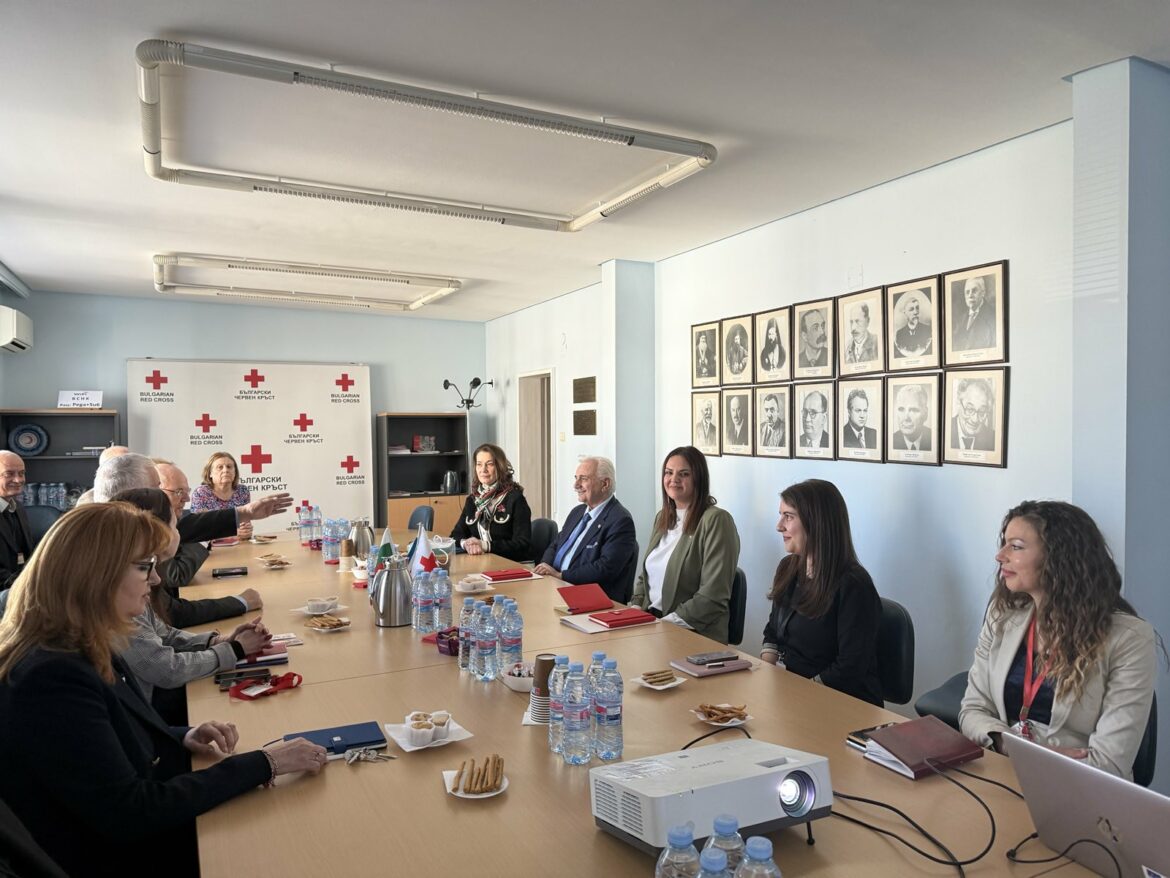 Με ιδιαίτερη επιτυχία και σε απόλυτα θερμό κλίμα ολοκληρώθηκε η επίσημη επίσκεψη του Προέδρου του Ελληνικού Ερυθρού Σταυρού Dr. Αντώνιου Αυγερινού, συνοδευόμενος από την Head of International Relations and Partnerships, κα Θάλεια Φωναζάκη, στα Κεντρικά Γραφεία του Βουλγαρικού Ερυθρού Σταυρού, στην Σόφια, όπου έτυχε θερμότατης υποδοχής από τον Πρόεδρο του Βουλγαρικού Ερυθρού Σταυρού, Dr. h. c. Acad. Hristo Grigorov, τον Γενικό Διευθυντή Prof. Dr. Krasimir Gigov και την Διευθύντρια Διεθνών Σχέσεων, Preslava Lilova, παρουσία του Έλληνα Πρέσβη στην Βουλγαρία, κ. Αλέξιου Μάριου Λυμπεροπούλου.