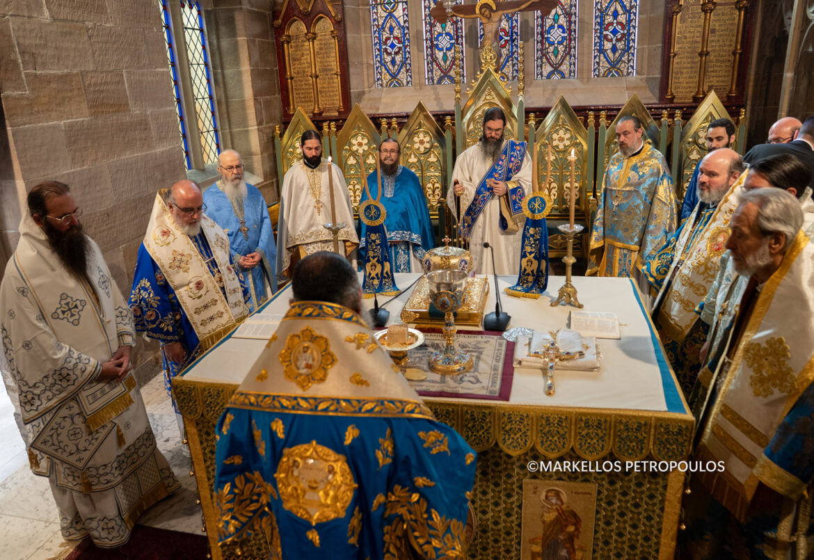 Την Τρίτη, 25 Μαρτίου, πανηγύρισε με εκκλησιαστική λαμπρότητα ο περικαλλής Ιερός Καθεδρικός Ναός του Ευαγγελισμού της Θεοτόκου, στο Σύδνεϋ. Επί τη μεγάλη Θεομητορική εορτή του Ευαγγελισμού, τελέστηκε Πολυαρχιερατικό Συλλείτουργο προεξάρχοντος του Σεβασμιωτάτου Αρχιεπισκόπου Αυστραλίας κ.κ. Μακαρίου, συλλειτουργούντων του Σεβασμιωτάτου Μητροπολίτου Σεβαστείας κ. Σεραφείμ, των Θεοφιλεστάτων Επισκόπων Τολιάρας και Νοτίου Μαδαγασκάρης κ. Προδρόμου, Πέρθης κ. Ελπιδίου, Μιλητουπόλεως κ. Ιακώβου και Μαγνησίας κ. Χριστοδούλου, Αρχιγραμματέως της Ιεράς Επαρχιακής Συνόδου της Αρχιεπισκοπής Αυστραλίας, του Πρωτοσυγκέλλου και Ιερατικώς Προϊσταμένου του Καθεδρικού Ναού, Πανοσιολογιωτάτου Αρχιμανδρίτου του Οικουμενικού Θρόνου κ. Χριστοφόρου Κρικέλη, και άλλων κληρικών της πόλεως του Σύδνεϋ.