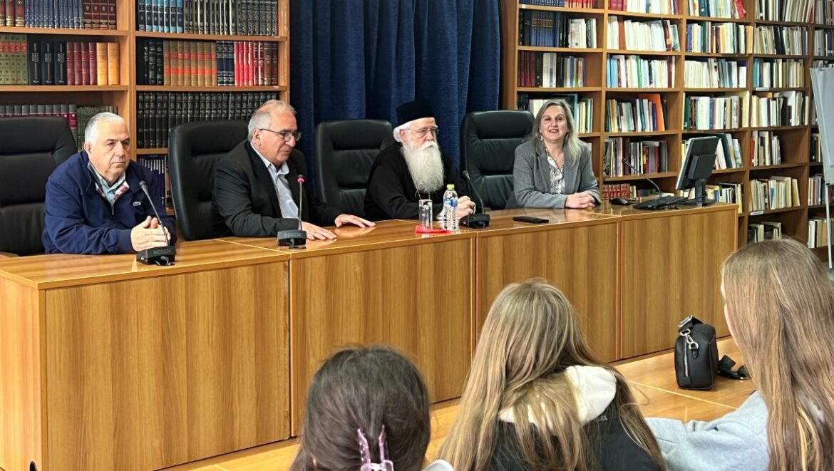 Τέλος, οι μαθητές ξεναγήθηκαν στους χώρους του Συνεδριακού Κέντρου, φιλοξενήθηκαν από τον Σεβασμιώτατο και έλαβαν, ως ευλογία, μία Καινή Διαθήκη και ένα DVD με τη ζωή του Χριστού.