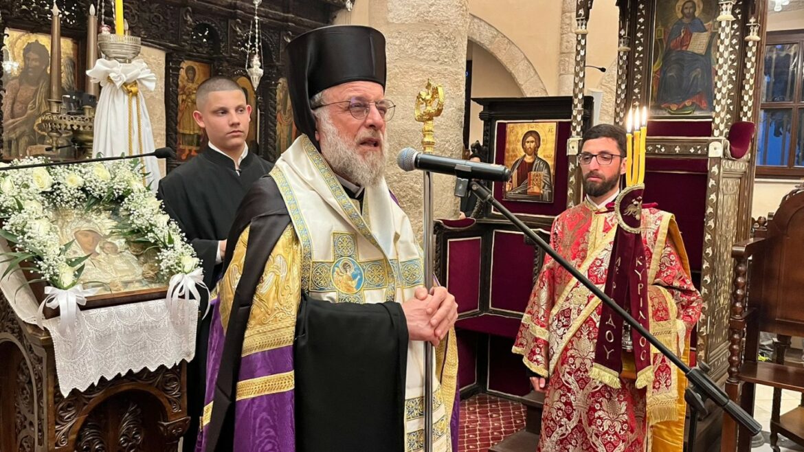 Ο Θεοφιλέστατος Επίσκοπος Ολύμπου κ. Κύριλλος χοροστάτησε της ως άνω ιεράς Ακολουθίας στον ενοριακό ιερό Ναό Κοιμήσεως Θεοτόκου Αφάντου.