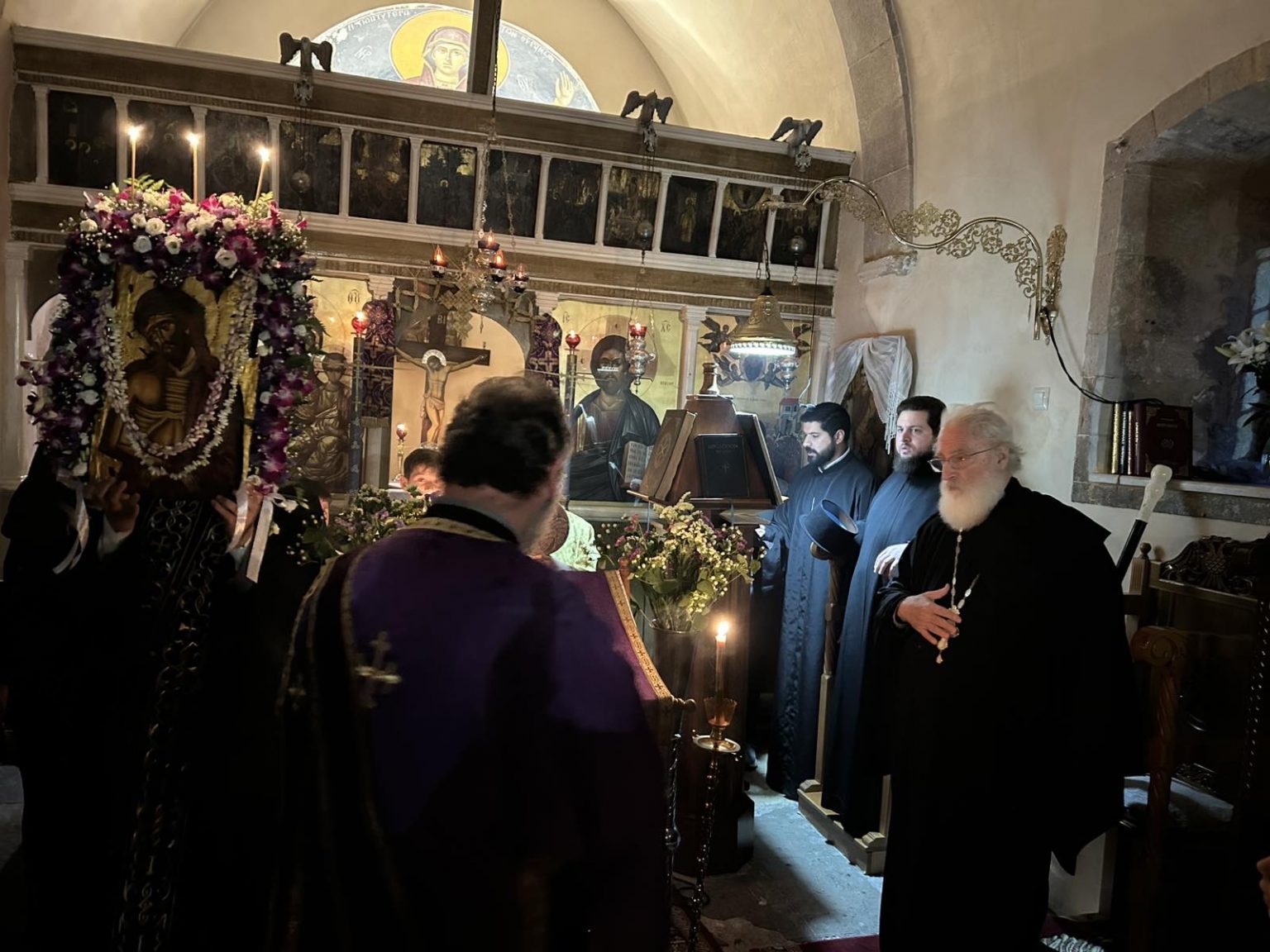 Με κατάνυξη τελέστηκε το απόγευμα της Κυριακής των Βαΐων, η ακολουθία του Νυμφίου, στον Ιερό Ναό Αγίας Ζώνης στις Αγιές Παρασκιές Πεδιαδος. Στην ακολουθία χοροστάτησε εκ του παραθρονίου, ο Σεβ. Ποιμενάρχης μας κ. Ανδρέας. Τέλος, ο Σεβασμιώτατος απεύθυνε θερμές πατρικές ευχές στο εκκλησίασμα για πορεία μετάνοιας κατα την Αγία και Μεγάλη Εβδομάδα.