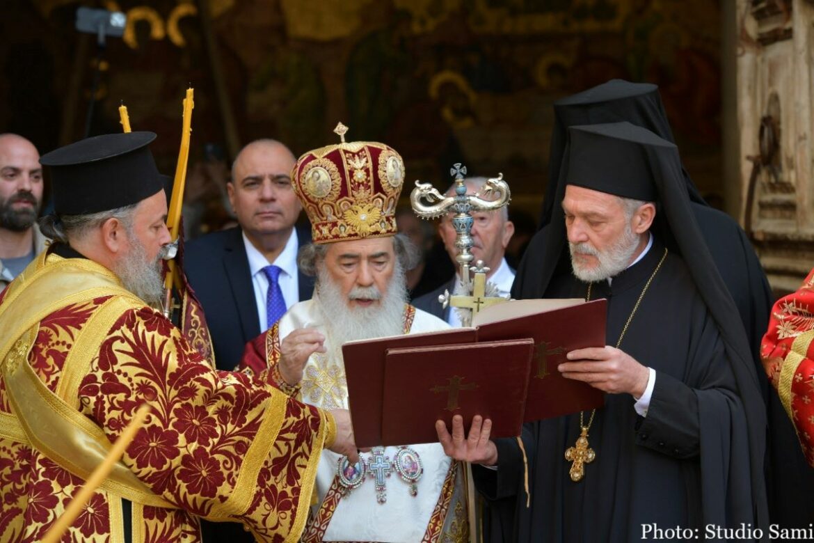 Τήν πρωΐαν τῆς Μεγάλης Πέμπτης, 4ης/17ης Ἀπριλίου 2025, ἐτελέσθη ἡ θεία Λειτουργία τοῦ Ἁγίου Βασιλείου τοῦ Μεγάλου εἰς τόν Ἱερόν Ναόν τοῦ Ἁγίου Ἰακώβου τοῦ Ἀδελφοθέου, προεξάρχοντος τῆς Α.Θ.Μ. τοῦ Πατρός ἡμῶν καί Πατριάρχου Ἱεροσολύμων κ.κ. Θεοφίλου, συλλειτουργούντων τῶν Σεβασμιωτάτων Ἀρχιεπισκόπων Κωνσταντίνης κ. Ἀριστάρχου, Σεβαστείας κ. Θεοδοσίου, Ἀνθηδῶνος κ. Νεκταρίου καί Πέλλης κ. Φιλουμένου, τοῦ Γέροντος Καμαράση Ἀρχιμανδρίτου π. Νεκταρίου ὡς πρώτου ἐκ τῶν Ἱερέων, τοῦ Ἀρχιμανδρίτου π. Μελετίου, καί ἄλλων Ἱερέων ἐξ ἀδελφῶν Ὀρθοδόξων χωρῶν, τοῦ Ἀρχιδιακόνου π. Μάρκου καί τῶν διακόνων Εὐλογίου, Δοσιθέου καί Συμεών, ψάλλοντος τοῦ Πρωτοψάλτου τοῦ Πανιέρου Ναοῦ τῆς Ἀναστάσεως διακόνου π. Εὐσταθίου ἑλληνιστί καί τῆς χορῳδίας τοῦ Ἱεροῦ Ναοῦ ἀραβιστί, καί μετέχοντος πυκνοῦ ἐκκλησιάσματος.